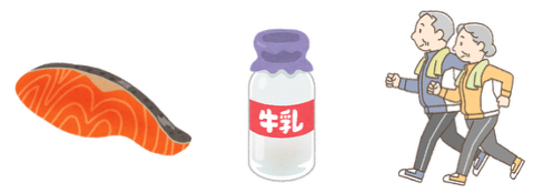 - ビタミンDが豊富な食事(きのこ類、鮭など)を摂ることで、カルシウムの吸収を促進して骨を強くできる。