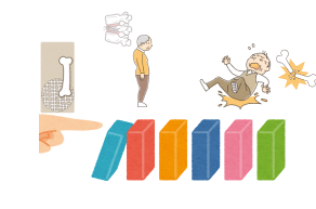 骨粗鬆症予防のための、食生活や運動習慣がドミノ骨折対策となる。